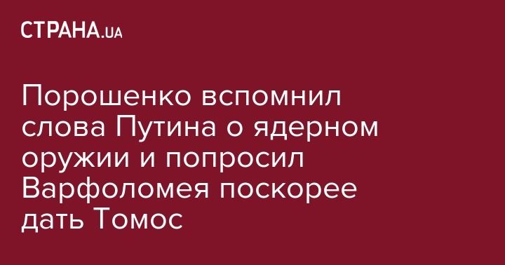 Порошенко вспомнил слова Путина о ядерном оружии и попросил Варфоломея поскорее дать Томос