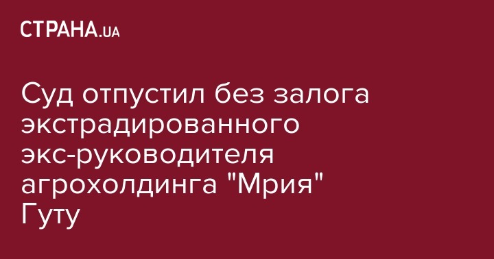 Шевченковский районный суд Киева отпустил под личное обязательство без залога экстрадированного из Швейцарии бывшего председателя совета директоров и совладельца агрохолдинга "Мрия" Николая Гуту. Об этом со ссылкой на пресс-секретаря Генеральной прокуратуры Андрея Лысенко пишет ЭП.