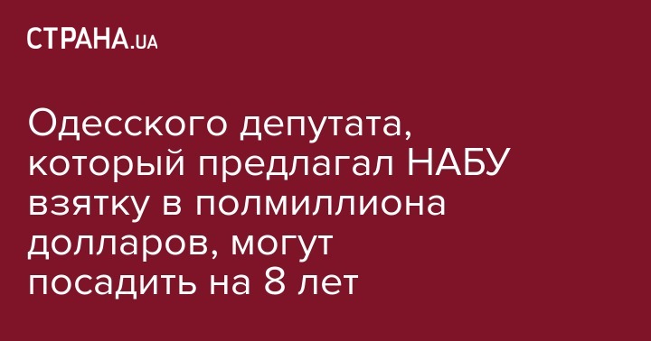 Одесского депутата, который предлагал НАБУ взятку в полмиллиона долларов, могут посадить на 8 лет
