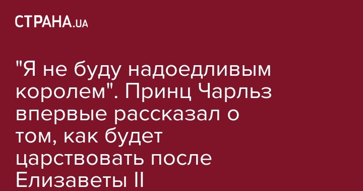 "Я не буду надоедливым королем". Принц Чарльз впервые рассказал о том, как будет царствовать после Елизаветы II