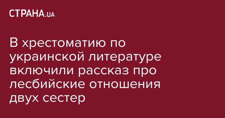 Вокруг хрестоматии по украинской литературе за 11 класс разгорелся скандал. В ней обнаружилось произведение украинской писательницы Татьяны Малярчук "Цветка и ее я", сюжет которого выстроен вокруг отношений двух сестер, которые порой становятся интимными.