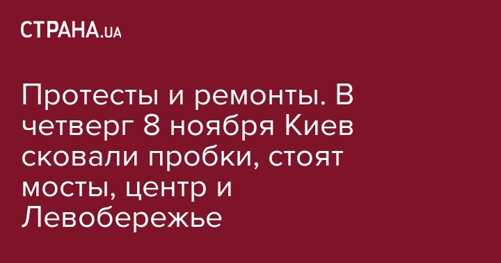 Протесты и ремонты. В четверг 8 ноября Киев сковали пробки, стоят мосты, центр и Левобережье