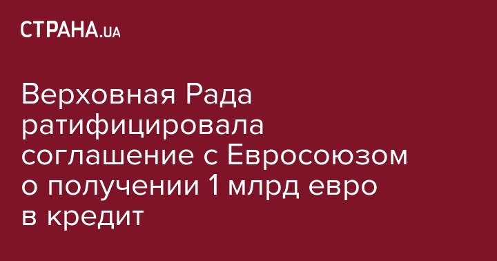 Верховная Рада ратифицировала соглашение с Евросоюзом о получении 1 млрд евро в кредит