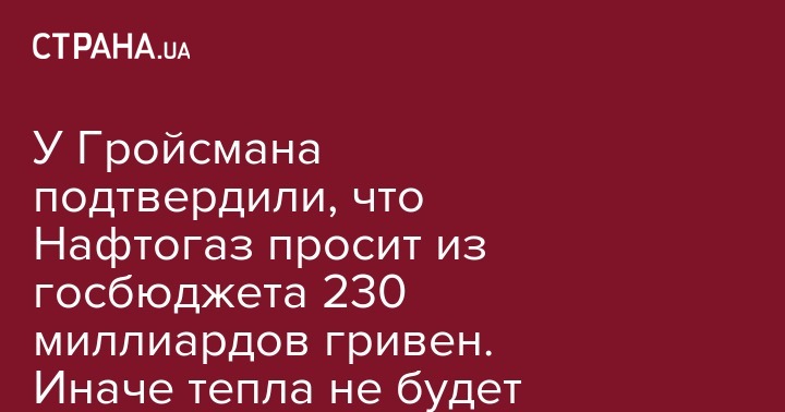 В правительстве Украины подтвердили запрос Национальной акционерной компании (НАК) "Нафтогаз Украины" на выделение 230 млрд гривен из государственного бюджета на 2019 год. Эти деньги официально запрашиваются для успешного прохождения отопительных периодов 2018/2019 и 2019/2020, а также надлежащего выполнения компанией обязанностей для обеспечения общественных интересов во время функционирования рынка природного газа.