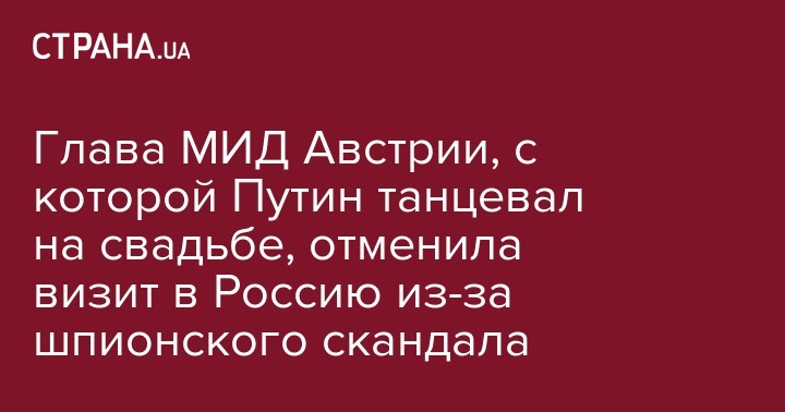 Министр иностранных дел Австрии Карин Кнайсль отменила визит в Россию из-за подозрения австрийского полковника в шпионаже на Москву. Об этом сообщил канцлер Австрии Себастьян Курц, пишет ТАСС.