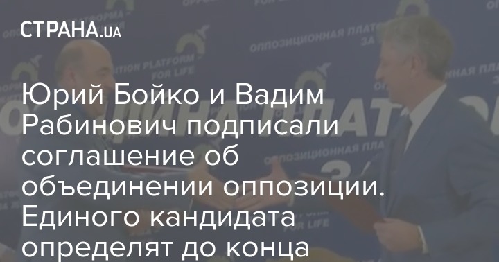Юрий Бойко и Вадим Рабинович подписали соглашение об объединении оппозиции. Единого кандидата определят до конца ноября