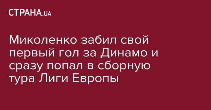Миколенко забил свой первый гол за Динамо и сразу попал в сборную тура Лиги Европы