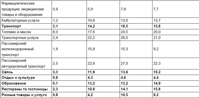 Повышение цен на транспорт в целом на 3,1% в основном вызвано подорожанием топлива и масел на 6%, а также транспортных услуг на 2,4%.