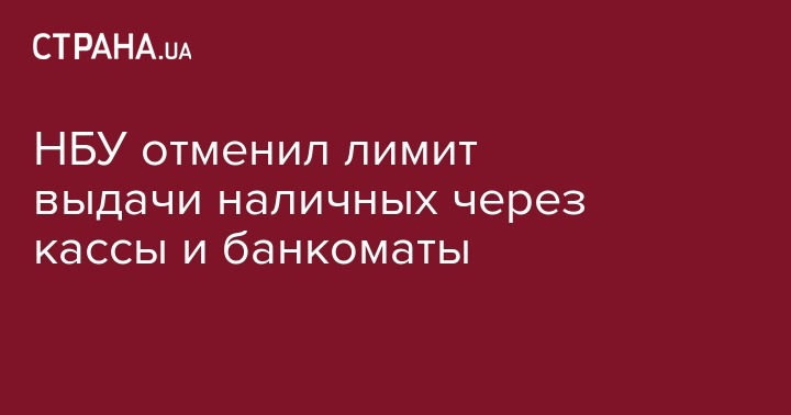 С 9 июня Национальный банк отменил лимит выдачи наличных средств в гривне через кассы и банкоматы. Об этом говорится в постановлении НБУ №342, сообщает УНИАН.