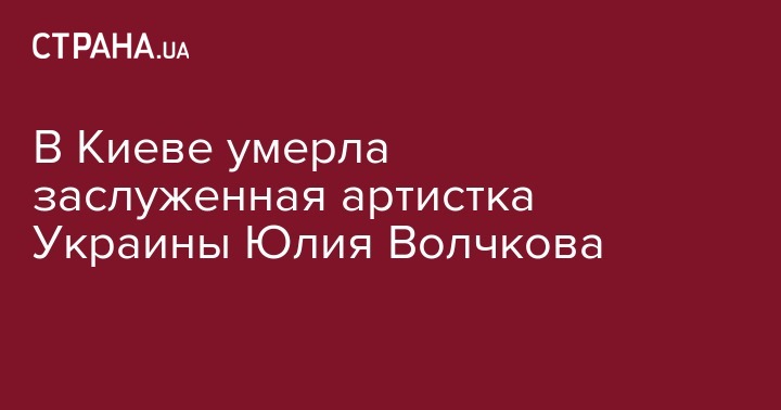 В субботу, 10 ноября, скончалась заслуженная артистка Украины Юлия Волчкова. Об этом в Facebook сообщает пресс-служба Театра драмы и комедии на левом берегу Днепра.