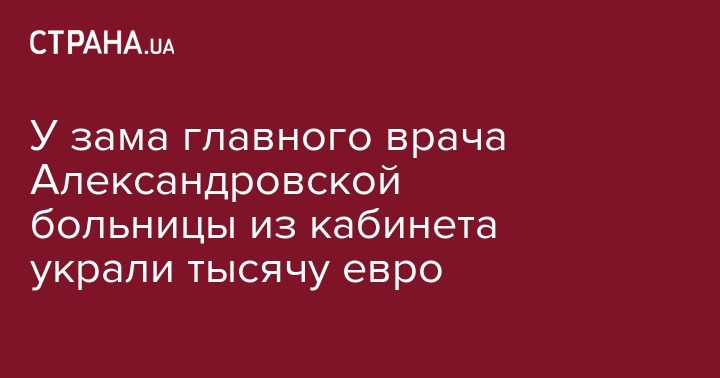 У зама главного врача Александровской больницы из кабинета украли тысячу евро