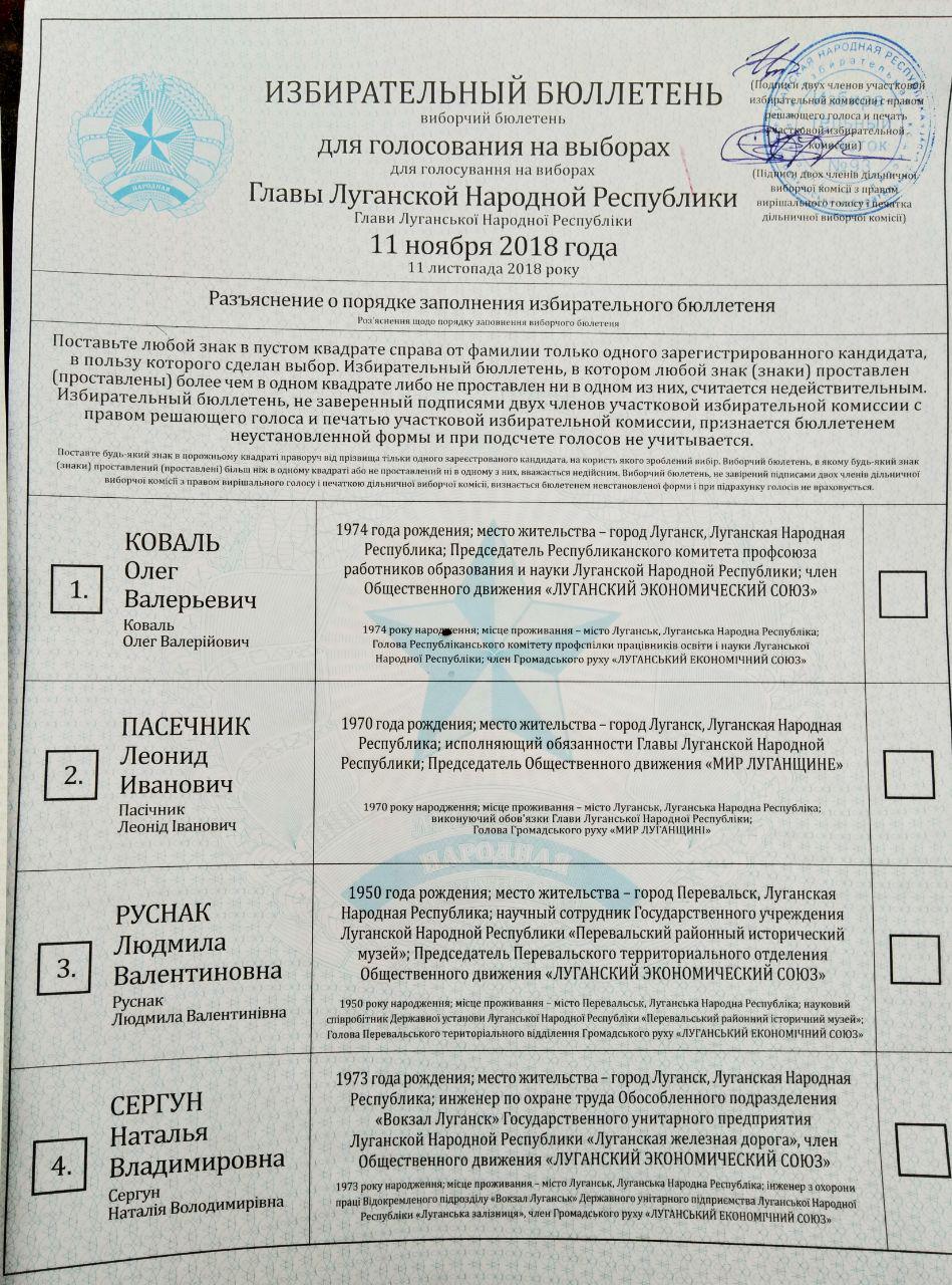 9:13  "Избирательный бюллетень" в "ЛНР". Как видим, он дублируется на украинский язык.