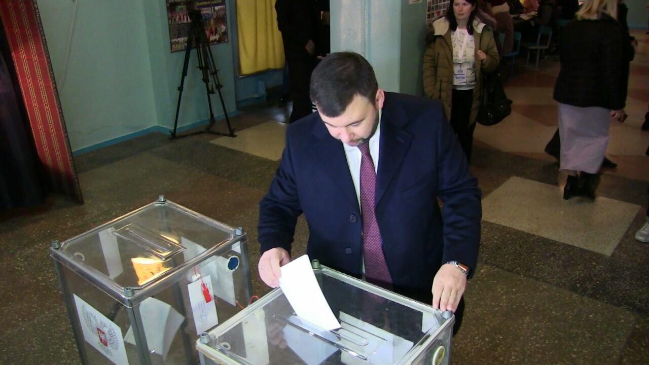 8:00 Пушилин опубликовал в своем Telegram фото, как он бросает бюллетень.
