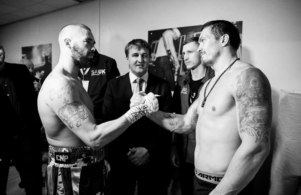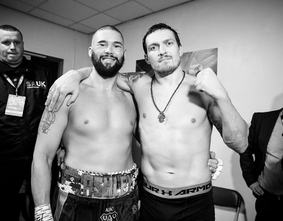 После завершения поединка Усик-Белью, британец выразил свое уважение украинскому боксеру. Фото после боя опубликовал в Facebook Александр Усик.