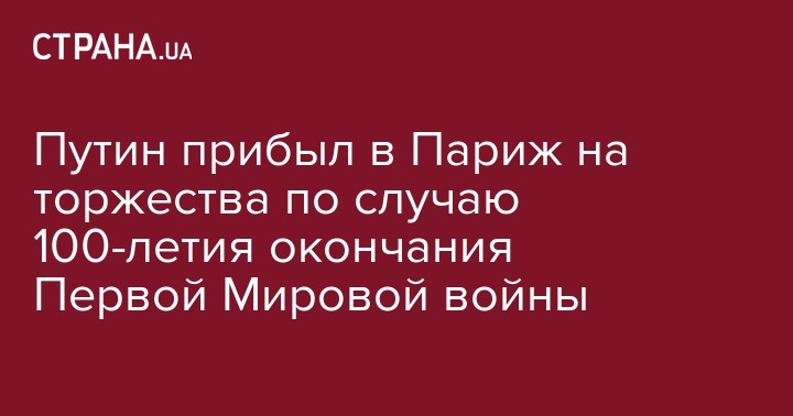 Президент РФ Владимир Путин прибыл в Париж для участия в мероприятиях, посвященных 100-летию окончания Первой Мировой войны, передает "Интерфакс".
