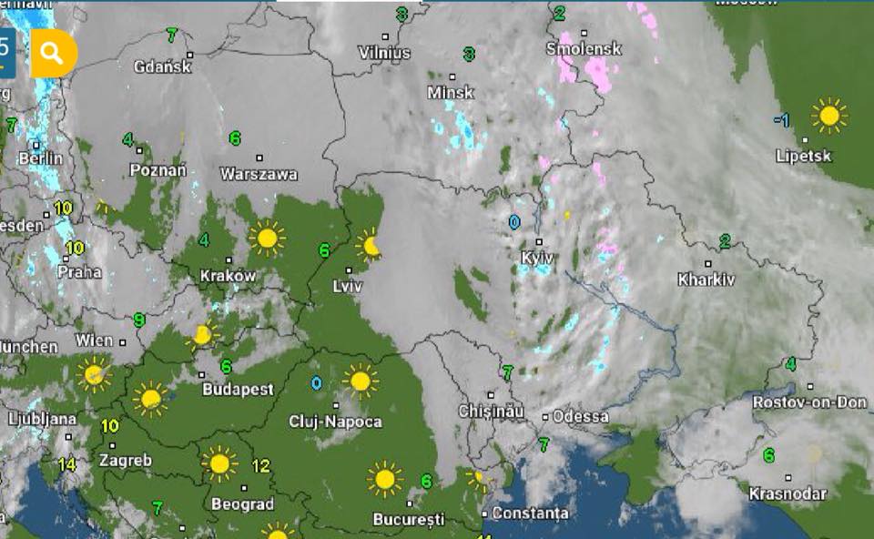 В Сумской, Полтавской, Черниговской областях может выпасть мокрый снег. На северо-востоке и в восточных областях Украины ожидается температура около нуля. На Западе +7...+12 градусов.