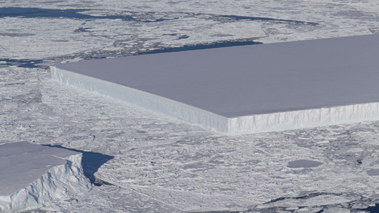 Айсберг с необычно прямыми углами заснял специалист агентства Джереми Харбек (Jeremy Harbeck) во время полета в рамках исследовательской программы по наблюдению за полярными льдами IceBridge. Изначально из-за формы айсберга ученые предположили, что он только что откололся от шельфового ледника Ларсена.