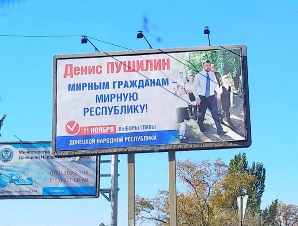 Таким образом, мессидж Москвы в том, что к власти в "республиках" приходит "партия мира". И, кстати, эту идею на своих предвыборных бордах продвигает тот же Пушилин. "Мирным гражданам - мирную республику" - таков один из основных слоганов его кампании, которой завешен весь Донецк.