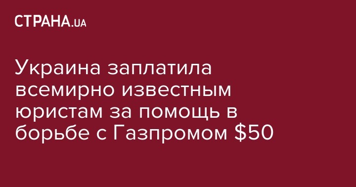Украина заплатила $50 фирме за юридическое консультирование при взыскании с российской компании "Газпром" в иностранных государствах 172 млрд гривен штрафа, наложенного Антимонопольным комитетом Украины. Об этом сообщают "Украинские новости" со ссылкой на тендерную документацию Министерства юстиции.
