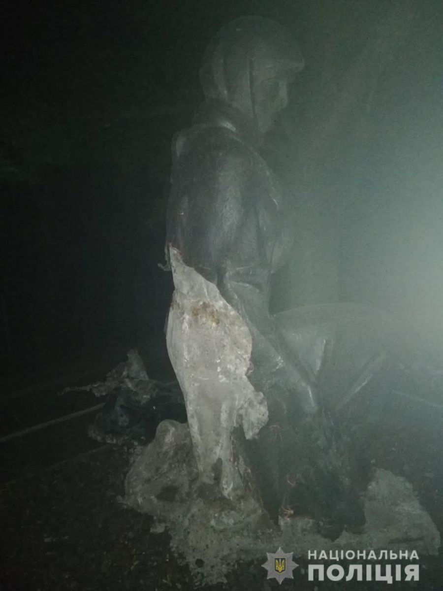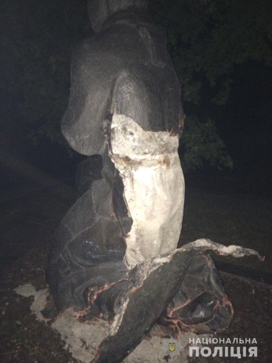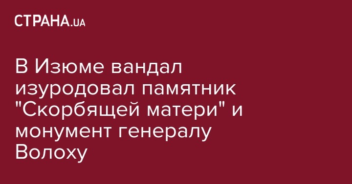 В Изюме вандал изуродовал памятник "Скорбящей матери" и монумент генералу Волоху