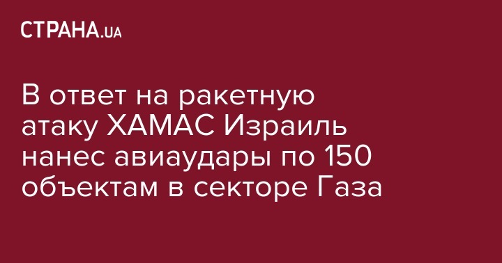 В ответ на ракетную атаку ХАМАС Израиль нанес авиаудары по 150 объектам в секторе Газа