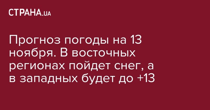 Во вторник, 13 ноября, в большинстве регионов Украины будет прохладно, местами будет идти снег. Об этом свидетельствует прогноз, опубликованный на сайте Укргидрометцентра