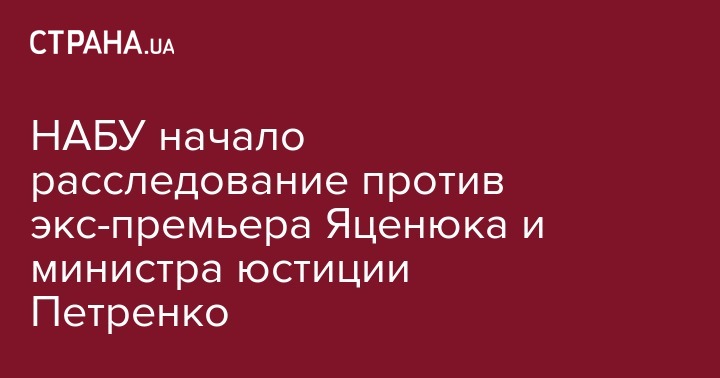 Национальное антикоррупционное бюро Украины заявило об открытии уголовное производства в отношении бывшего премьер-министра Арсения Яценюка и министра юстиции Павла Петренко по факту злоупотреблениями власти. Об этом стало известно из ответа на журналистский запрос, пишут "Українські новини".