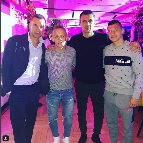 Шевченко и футболисты сделали памятное фото с Паоло Мальдини, фото: instagram.com/petryak1994