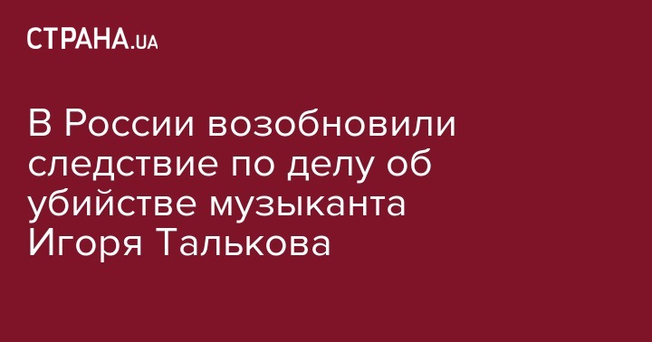 В России управление Следственного комитета РФ по Санкт-Петербургу возобновило расследование уголовного дела об убийстве музыканта и автора песен Игоря Талькова, пишет Медуза.