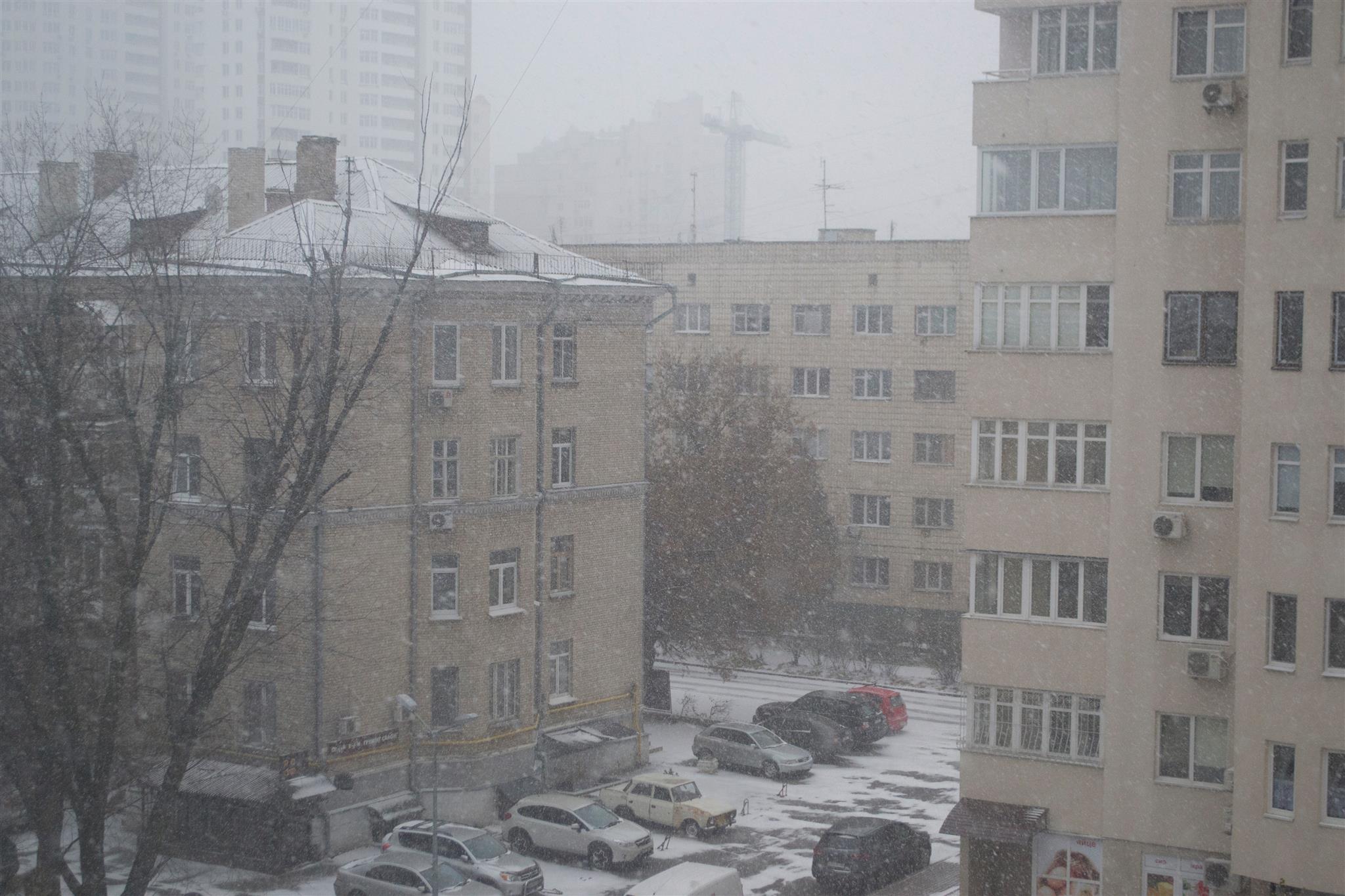 Утром, 14 ноября, в столице Киева пошел первый снег. Снежные хлопья посыпались с неба около 09.00 и постепенно снегопад набирает силу.
