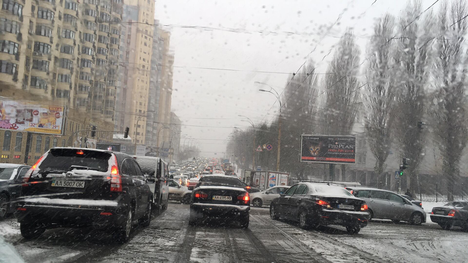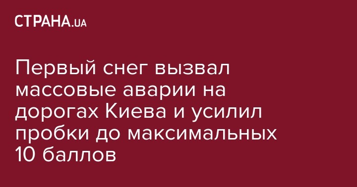 Первый снег вызвал массовые аварии на дорогах Киева и усилил пробки до максимальных 10 баллов