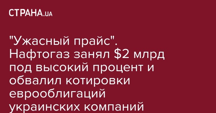 "Ужасный прайс". Нафтогаз занял $2 млрд под высокий процент и обвалил котировки еврооблигаций украинских компаний