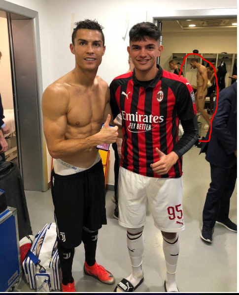 Обнаженный защитник "Ювентуса" Джорджо Кьеллини случайно попал на фото 18-летнего игрока "Милана" Рауль Белланова. Снимок был сделан в раздевалке после матча. Об этом сообщает footballua.tv.