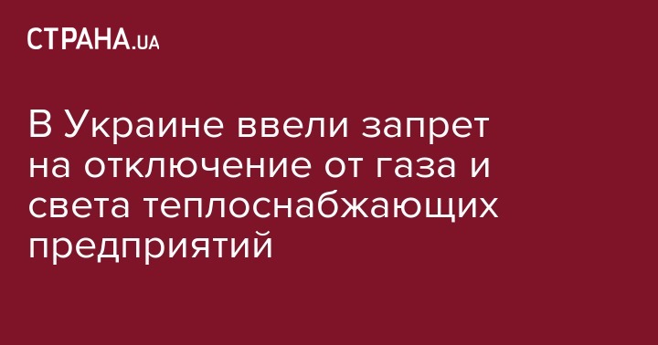 В Украине ввели запрет на отключение от газа и света теплоснабжающих предприятий