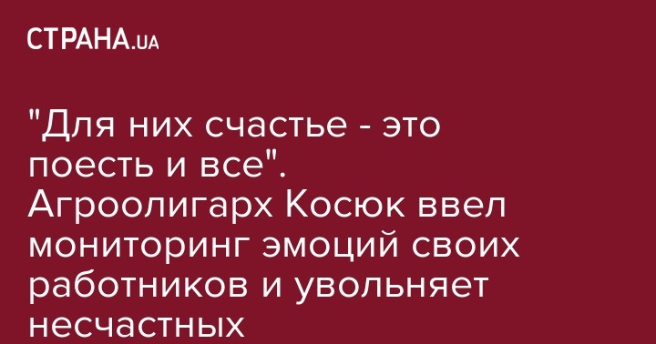 "Для них счастье - это поесть и все". Агроолигарх Косюк ввел мониторинг эмоций своих работников и увольняет несчастных