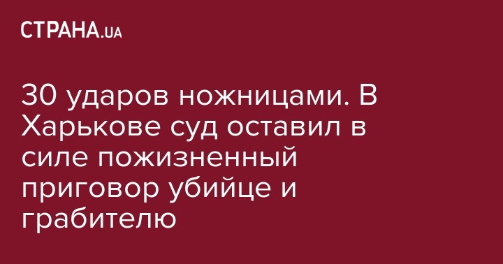30 ударов ножницами. В Харькове суд оставил в силе пожизненный приговор убийце и грабителю