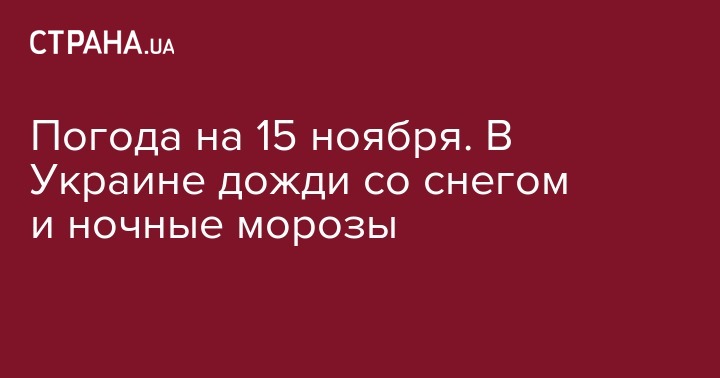 Погода на 15 ноября. В Украине дожди со снегом и ночные морозы