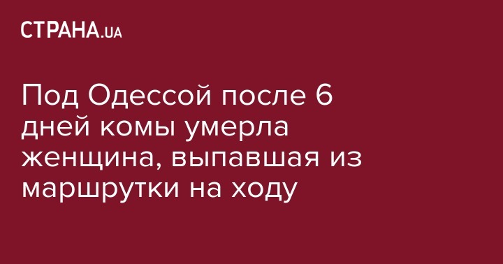 Под Одессой после 6 дней комы умерла женщина, выпавшая из маршрутки на ходу