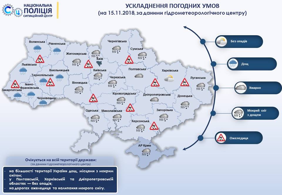 За минувшие сутки, 14 ноября, в Украине произошло 1358 дорожно-транспортных происшествий. В результате аварий пострадали 96 человек, 11 погибли. Так в одном из ДТП, на крутой улице Киева из-за снега и гололеда столкнулись шесть авто. Об этом сообщает пресс-служба  Национальной полиции в четверг, 15 ноября.
