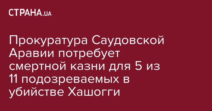 "Генеральный прокурор Саудовской Аравии сообщил, что будет требовать смертной казни для пятерых из 11 подозреваемых, которым предъявлены обвинения в убийстве известного журналиста Джамаля Хашогги", - говорится в публикации.