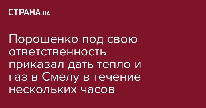 Президент Украины Петр Порошенко дал поручение обеспечить город Смела (Черкасская обл.) теплоснабжением в течение нескольких часов.