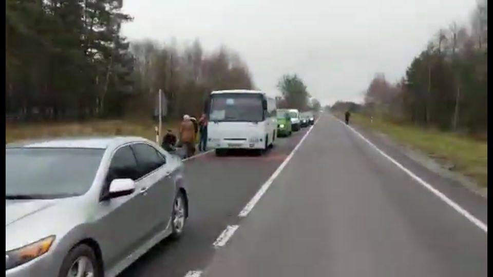 Местное издание "Твоє Місто" пишет, что полицейские договорились с шахтерами, что те будут пропускать машины каждые 15 минут. Однако на дороге все равно образовываются пробки.