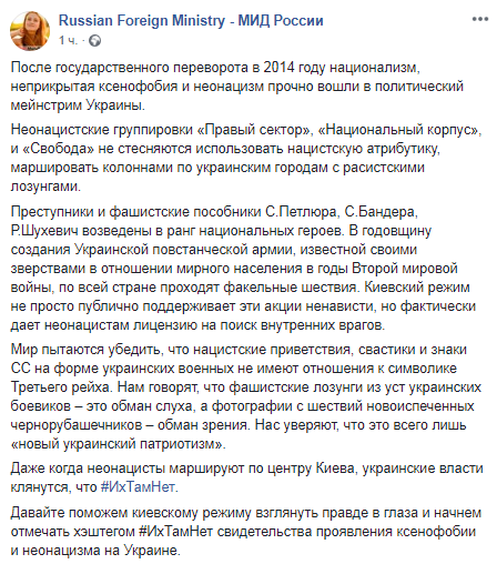 "ИхТамНет". МИД РФ запустило флешмоб "против неонацизма в Украине", используя известный антироссийский мем