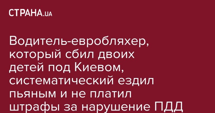 37-летнего водителя Opel Vectra на латвийских еврономерах, который 14 ноября сбил двоих детей, идущих по обочине дороги в селе Качалы, Бородянского района Киевской области, полиция не раз задерживала за пьяное вождение. Об этом со ссылкой на собственные источники пишет Оbozrevatel.