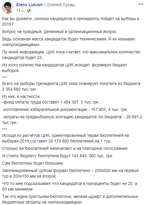 Так что ждем простынки-бюллетени, мелкий шрифт и дополнительные бюджетные затраты на "непроходимцев", - прогнозирует Лукаш у себя в Facebook.