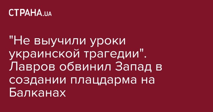 Глава МИД РФ Сергей Лавров обвинил страны Запада в том, что они "не выучили уроки украинской трагедии" и пытаются превратить Балканы в "еще один плацдарм против России". Об этом он сказал в интервью для Serbian Telegraph, текст которого опубликовало МИД России.