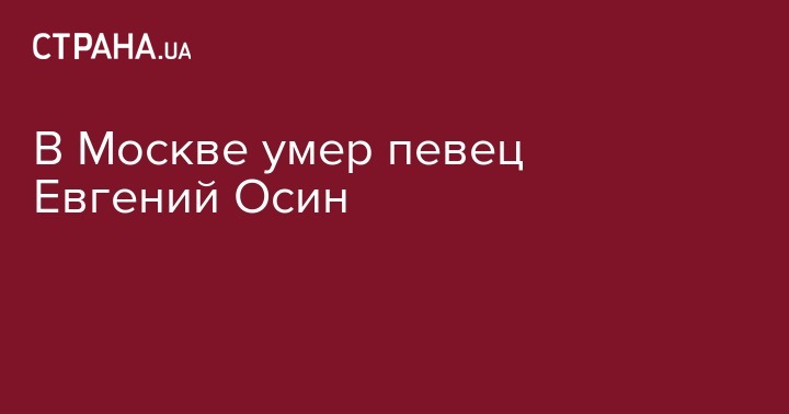 17 ноября в Москве, в своей квартире, умер российский певец Евгений Осин. Об этом сообщает телеграм-канал Mash. На момент смерти музыканту было 54 года.