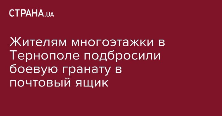 В спальном районе Тернополя 17 ноября неизвестный подложил в почтовый ящик одного из подъезда по улице 15 Апреля боевую гранату. Ее обнаружили и обезвредили сотрудники полиции. Об этом сообщает сайт "20 минут".