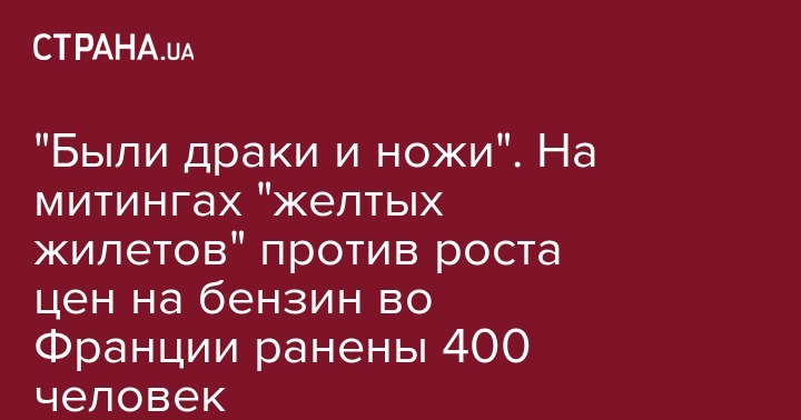 Вчера, 18 ноября, по всей Франции прокатились массовые манифестации протеста против планов правительства резко повысить цены на топливо начиная со следующего года. Количество раненых увеличилась до 400 человек. Об этом передает BBC.