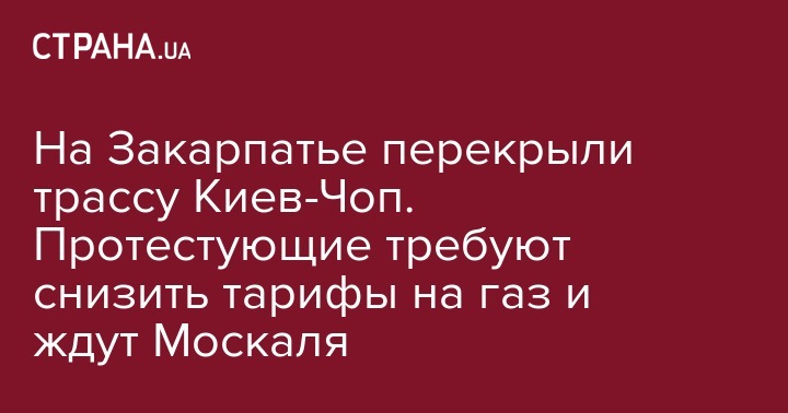 "Стою в пробке на международной трассе Киев-Чоп, в Нижних Воротах. Селяне протестуют. Хотят таким образом снизить тарифы на газ. Ждут председателя Закарпатской ОГА Геннадия Москаля", - рассказал собеседник агентства, работник НЭК "Укрэнерго".